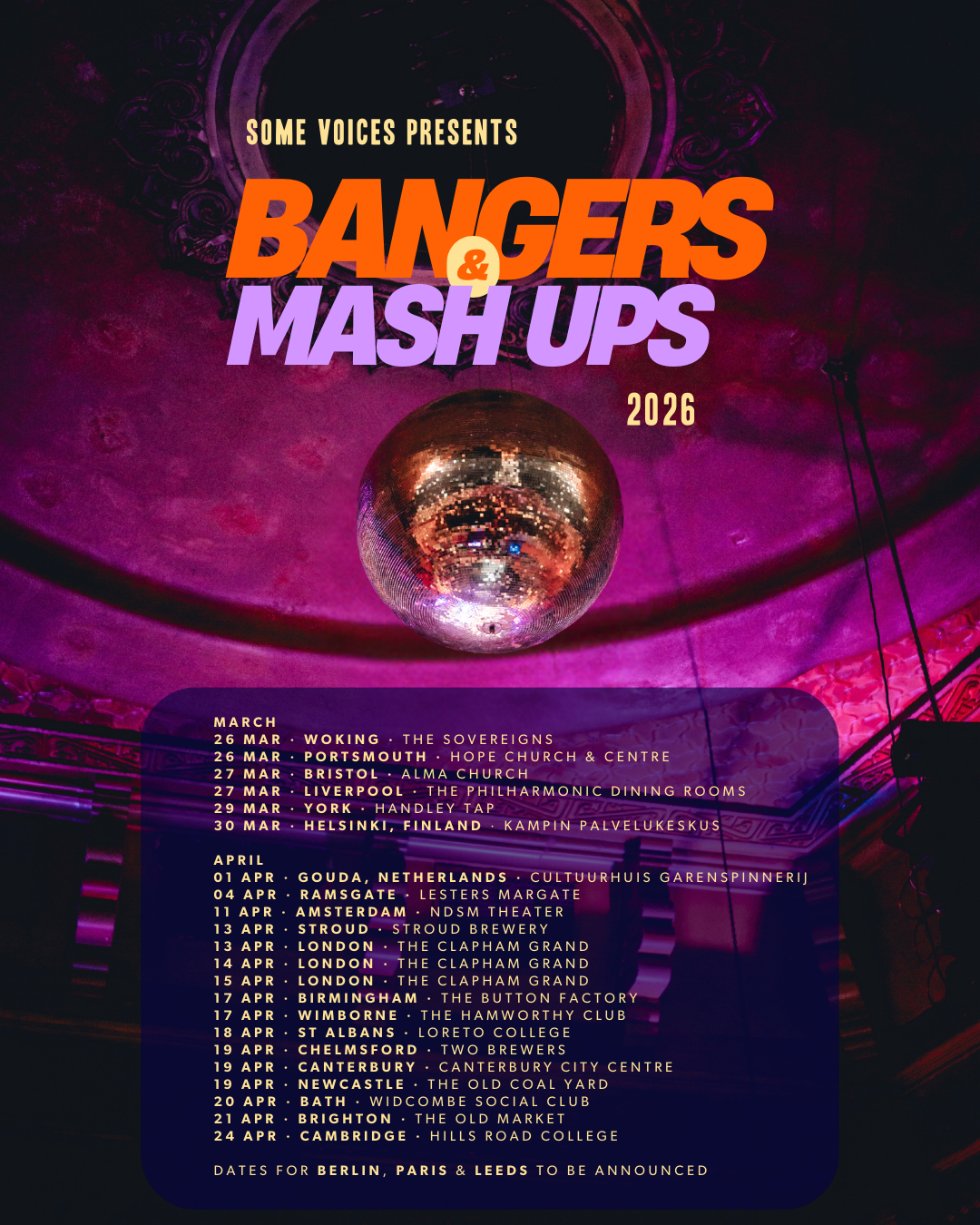 Expect a feast of big tunes and bold mash-ups: the classics you love, twisted in ways you won’t see coming, from the 70s to now, all in true Some Voices style.